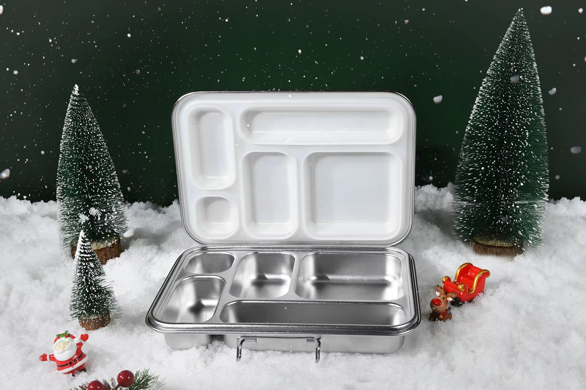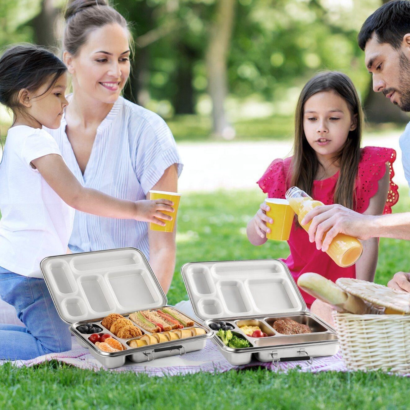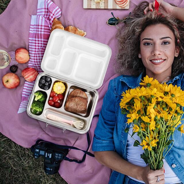 Die Oumego Edelstahl-Lunchbox bietet Kindern eine sichere und praktische Lösung für das Mittagessen unterwegs. Das robuste Design mit fünf separierten Fächern ermöglicht eine ausgewogene Portionierung verschiedener Lebensmittel und fördert gesunde Essgewohnheiten. Die hochwertige 316 er Edelstahlkonstruktion garantiert Langlebigkeit und Hygiene, während die zuverlässigen Silikon-Clips eine vollständige Auslaufsicherheit gewährleisten. Mit einem Fassungsvermögen von 890ml ist die Box ideal für Schulalltag, Kindergarten und Ausflüge dimensioniert. Als wiederverwendbare Alternative zu Einwegverpackungen trägt sie zu einer nachhaltigen Lebensweise bei und reduziert Kunststoffabfälle erheblich. Die spülmaschinenfeste Oberfläche vereinfacht die tägliche Reinigung und Wartung.